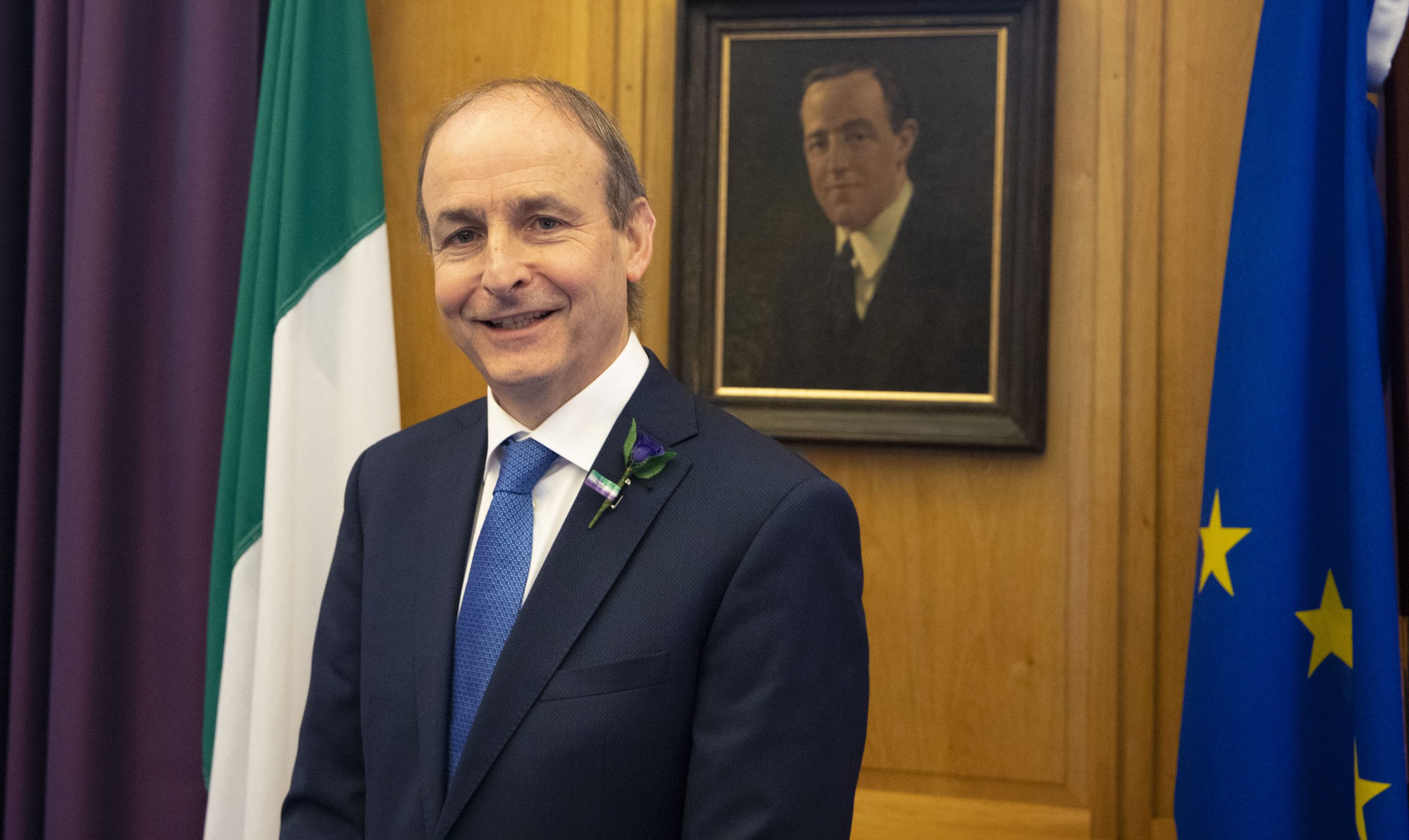 Joining An Taoiseach Micheál Martin TD to strike a pose with a purple rose for 65 Roses Day were: news anchor Bryan Dobson, nutritionist Rosanna Davison, celebrity chef Adrian Martin, Wild Youth frontman, Dave Whelan, columnist and GAA pundit Joe Brolly, TV hosts Mairead Ronan and Diana Bunici, sporting heroes Michael Carruth, Cian O’Connor and Louise Galvin, and singers Brian Kennedy, Jake Carter and Michael English. Accompanying them in painting a rosy picture for 65 Roses Day were Harry Cahill (age 12), who has CF, and his little sister Emily (age 10), from Maynooth, Co. Kildare.