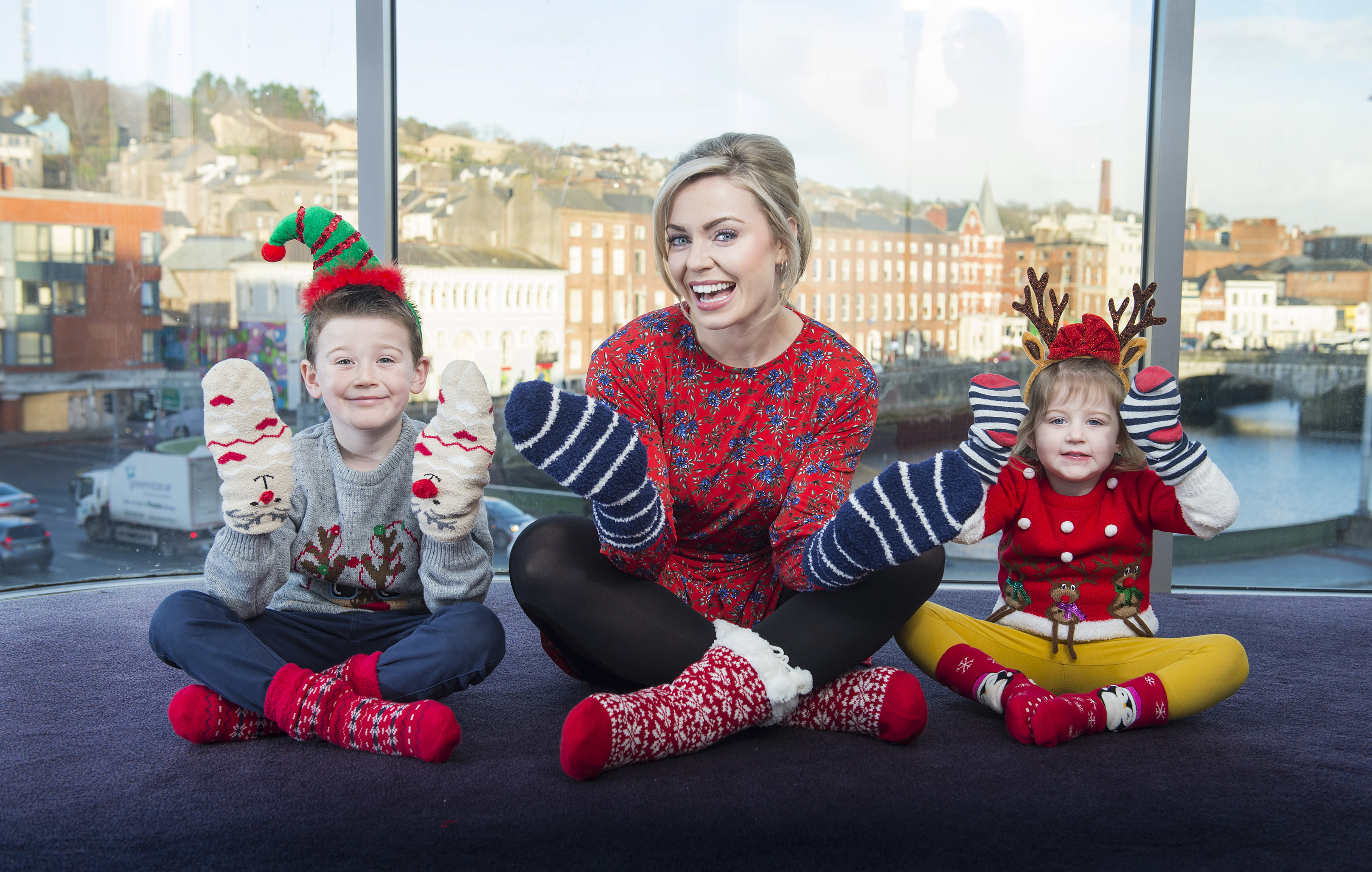 Anna Geary, well-known Sports and TV presenter, joined Jack and Amelia Forde to launch Pull Up Your Christmas Socks for CUH Children’s Unit.