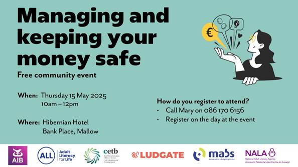 A free public event offering advice on managing your money and avoiding fraud is taking place in the Hibernian Hotel, Bank Place, Mallow on Thursday 15 May 2025, from 10am to 12noon. A number of financial institutions and budgeting advice services in Cork are coming together to host this free event for the public offering…