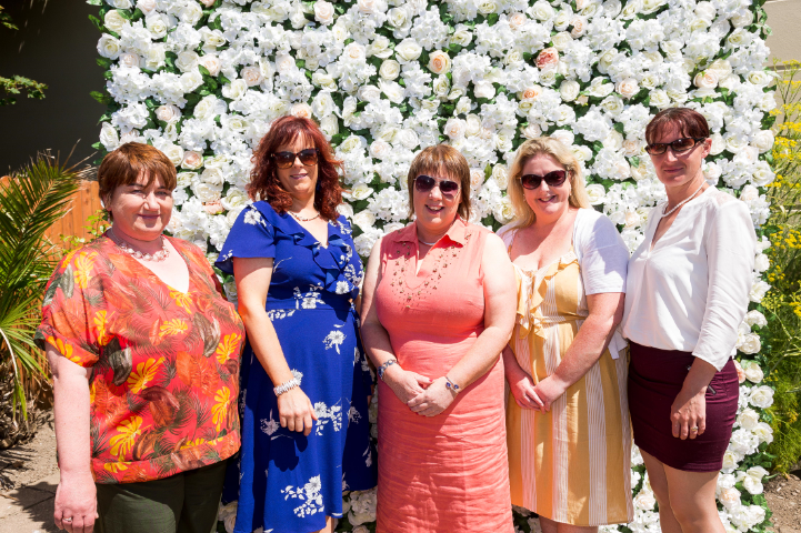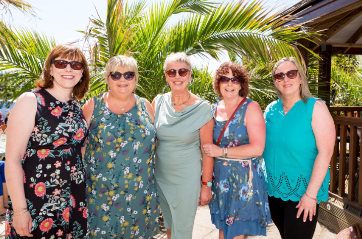 - 14/07/2019 – REPRO FREE Jean Mc Grath, Douglas; Sarah Mc Carthy, Skibbereen; Ann Marie, Emma and Barbara Connolly, Timoleague pictured on Sunday 14th of July at Cope Foundation’s fundraising West Cork Afternoon Tea with beauty guru Triona McCarthy in the Celtic Ross Hotel. Picture: Alison Miles / OSM PHOTO