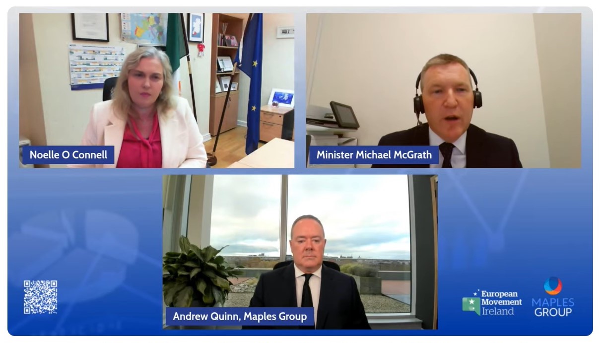This was one of the key takeaways that attendees from across industry took from an event this afternoon with Minister for Finance Michael McGrath TD and hosted by European Movement Ireland and the Maples Group.
