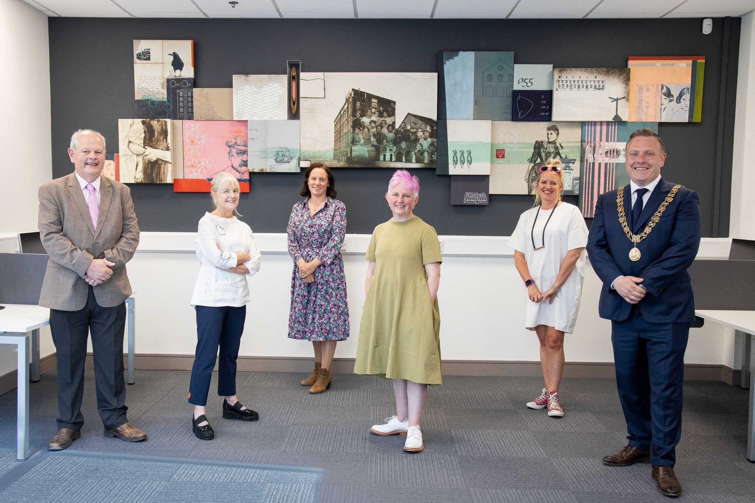 Lord Mayor of Cork, Cllr Colm Kelleher launches an artwork in textiles by Anne Kiely and Carmel Creaner called ‘Plus ca change: the woven history of Douglas’ in the newly re-opened and refurbished Douglas Library.