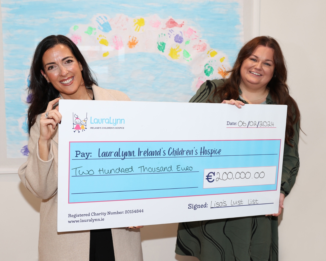 “I am profoundly grateful for the opportunity to contribute to the incredible work of LauraLynn. As I hand over this donation of €200,000, my heart is filled with joy knowing that together, we are making a meaningful difference in the lives of those facing challenging times. The cheque is not just a sum of money; it represents compassion, support, and the collective effort to bring comfort and care to those in need. Let this act inspire a ripple of kindness, reminding us all that even a small gesture can make a big impact on someone’s journey”, said Lisa McGowan.