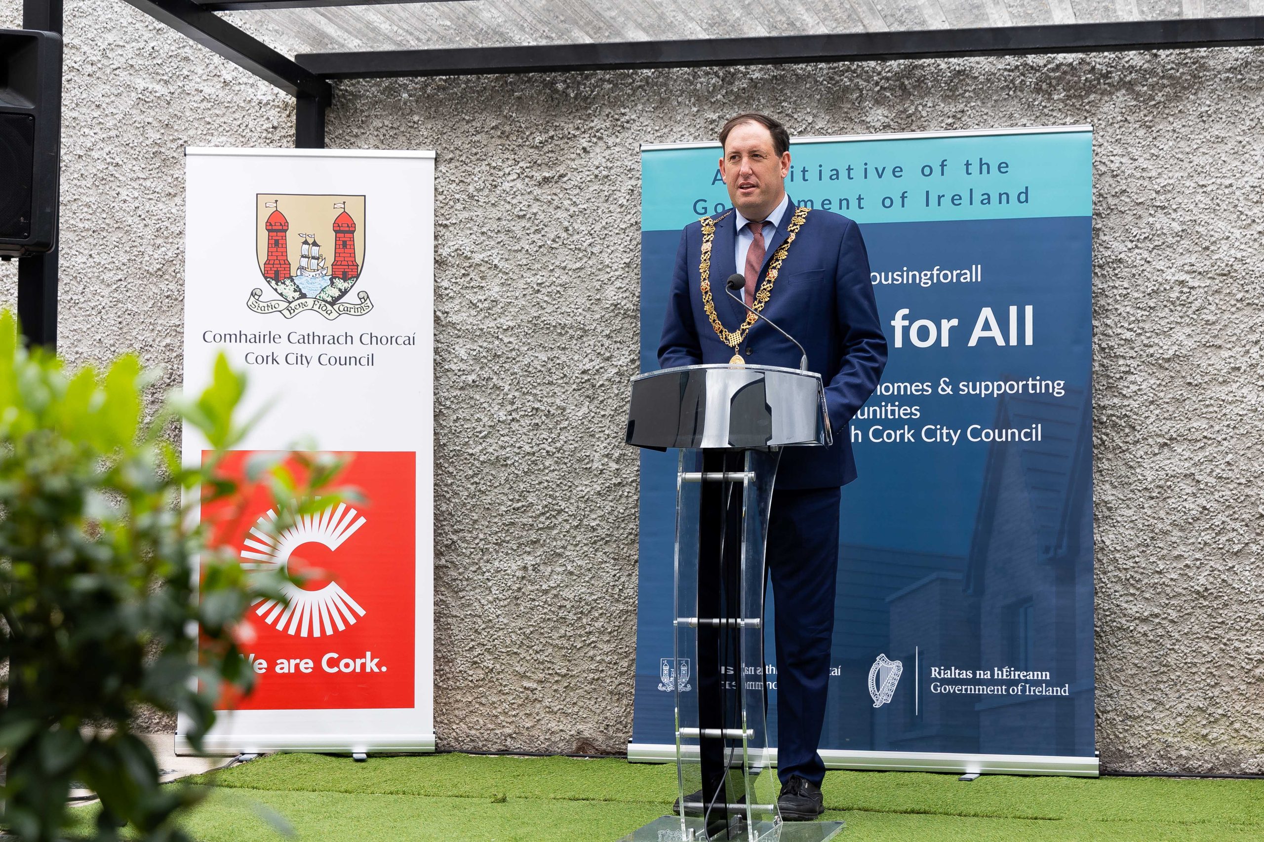 The Lord Mayor of Cork, Cllr Kieran McCarthy, accompanied by Ann Doherty, Chief Executive of Cork City Council, officiated at formal opening ceremonies today, May 23, 2024, to mark the delivery of 62 new homes across 4 development schemes in Cork City.